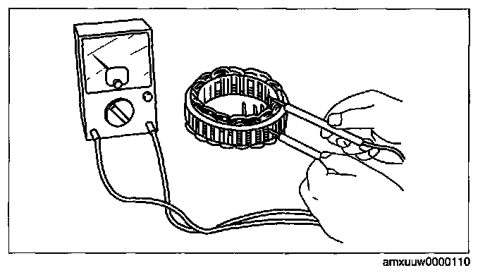 2. Verify that there is no continuity between the stator coil leads and core using a tester.