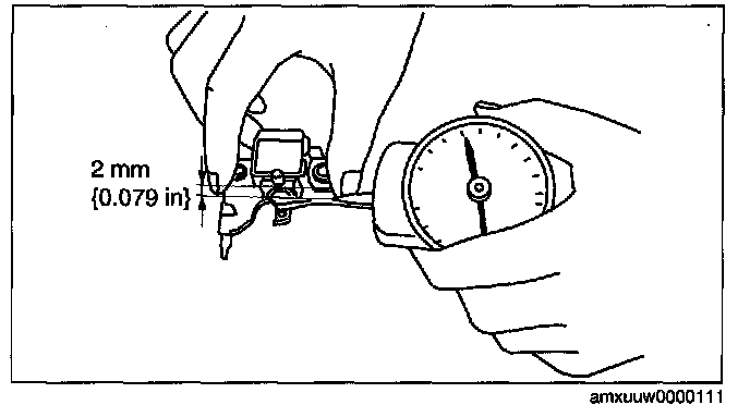 2. Read the spring pressure gauge at the brush tip projection of 2 mm {0.079 in}.