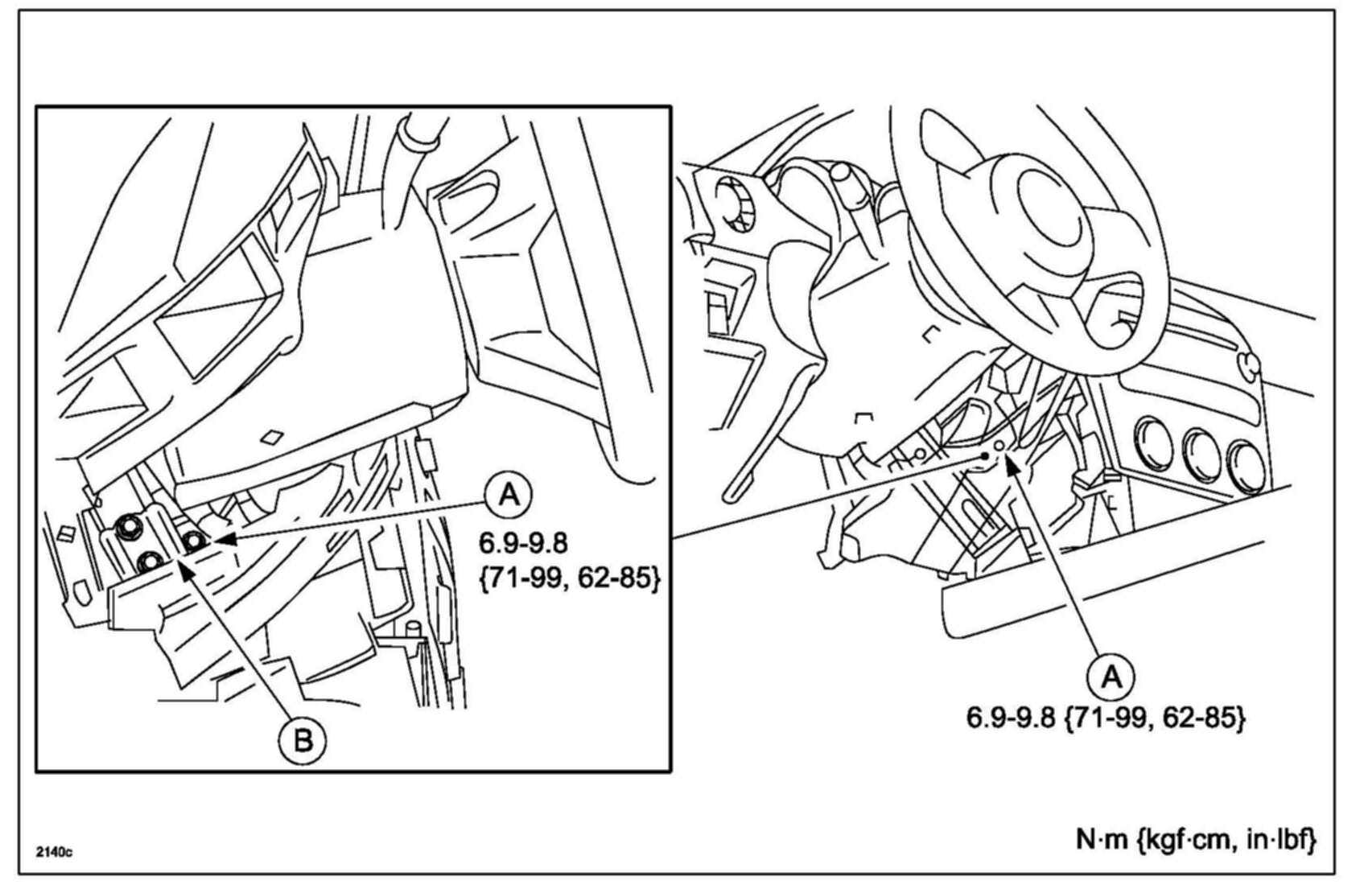 5. Install installation bolt (A) next to instrumentation panel bracket (B).