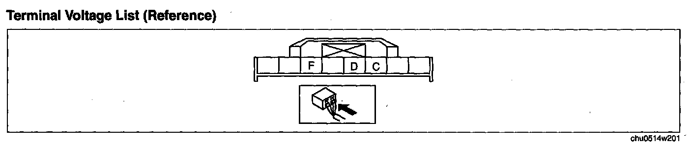 5. If the value are not as specified in the Terminal Voltage List (Reference), inspect the parts under "Action" and related wiring harnesses.