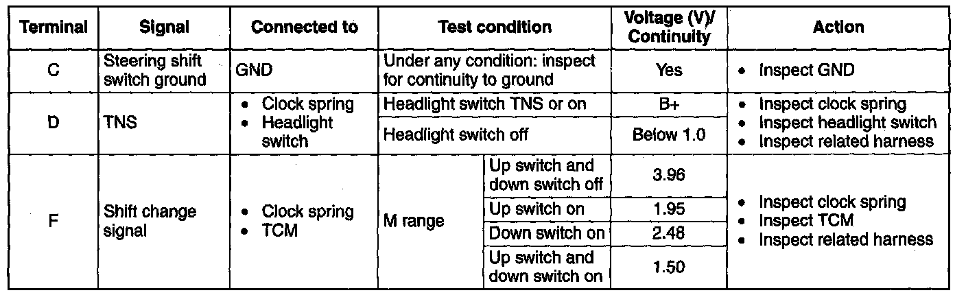 ^ When inspecting terminal C for continuity, disconnect the steering shift switch connector.