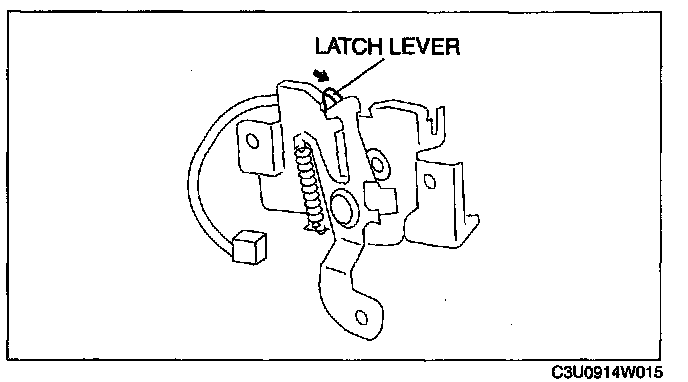 HOOD LATCH SWITCH INSPECTION1. When inspecting the latch, press the latch lever using a flathead screwdriver or a similar tool.