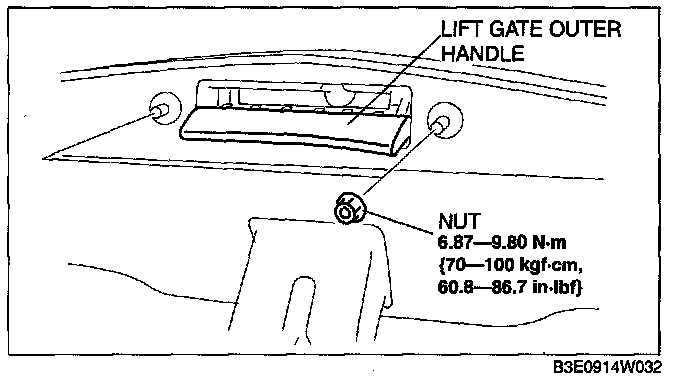 LIFTGATE OUTER HANDLE REMOVAL/INSTALLATION1. Remove the liftgate upper trim.