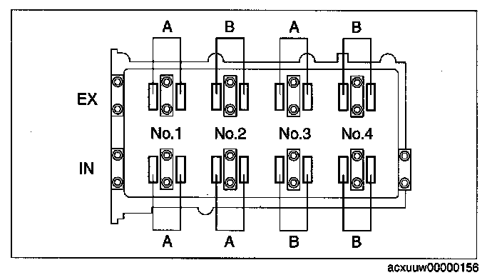 5) Measure the valve clearance of location B shown in the figure.