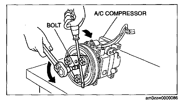2. When installing a new A/C compressor body, replace the bolt.