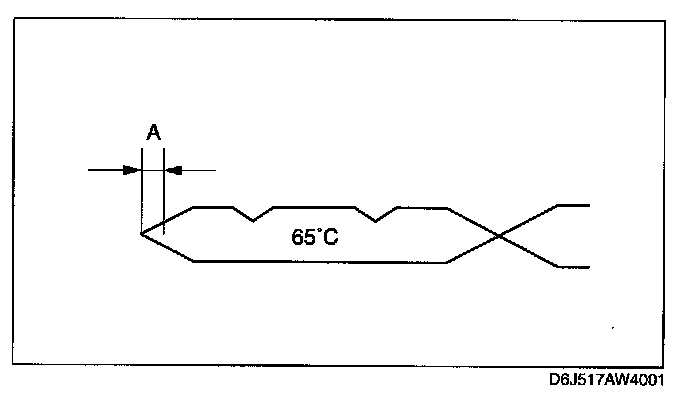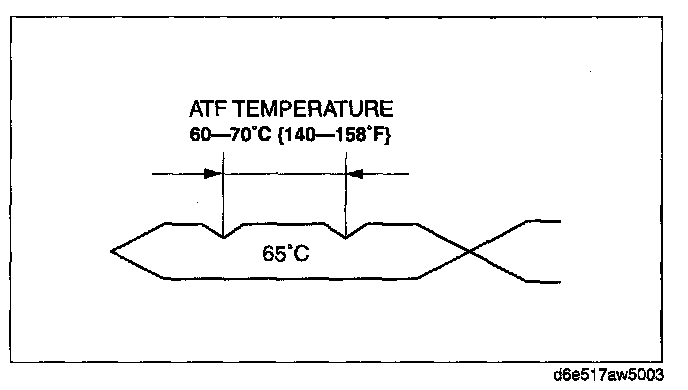 ^ If a final inspection of the ATF level is performed without driving the vehicle, or the ATF amount is inspected while the ATF temperature is not at about 60-70° C (140-158° F), the ATX could be damaged because the ATF level inspection would be incorrect.