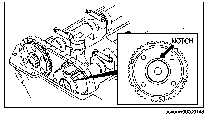 9. Verify that the groove of the rotor and notch of the cover on the variable valve timing actuator are aligned and fitted.