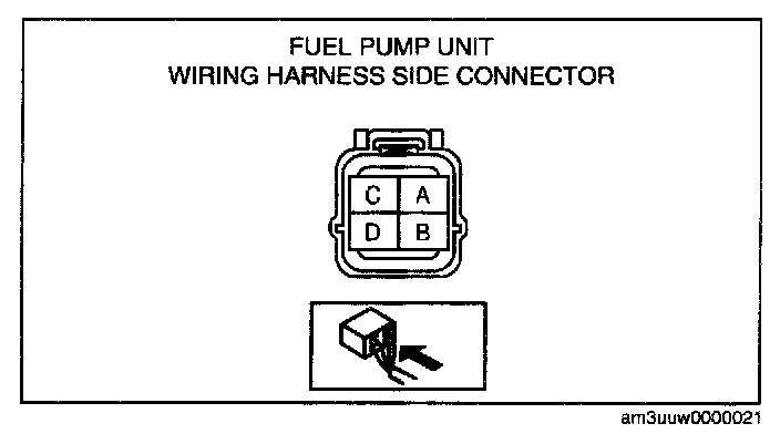 - Fuel pump unit terminal D and power supply