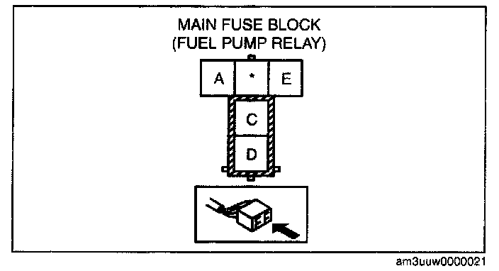 CAUTION: Be careful to short the specified terminal as shorting the wrong terminal of the main fuse block may cause a malfunction.