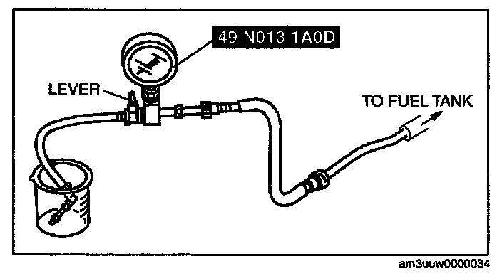 CAUTION: The fuel pump may malfunction if it is operated without any fuel in the fuel tank (fuel pump idling). Constantly monitor the amount of fuel being discharged and immediately stop operation of the pump when essentially no fuel is being discharged.
