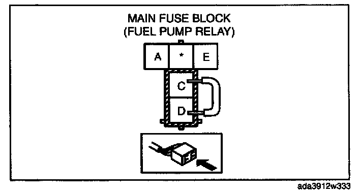 3. Using a jumper wire, short fuel pump relay terminals C and D and connect the negative battery cable to start the fuel pump.