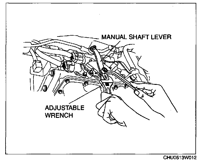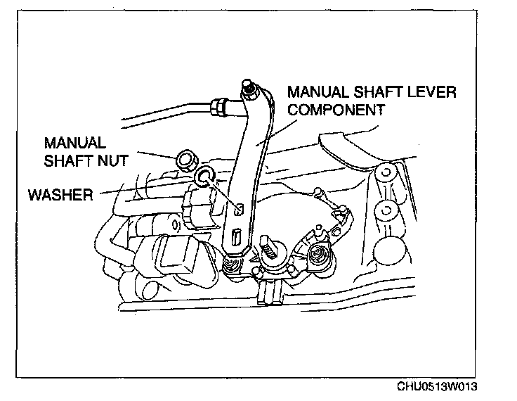 ^ Do not use an impact wrench. Hold the manual shaft lever when removing the manual shaft nut, otherwise the transmission may be damaged.