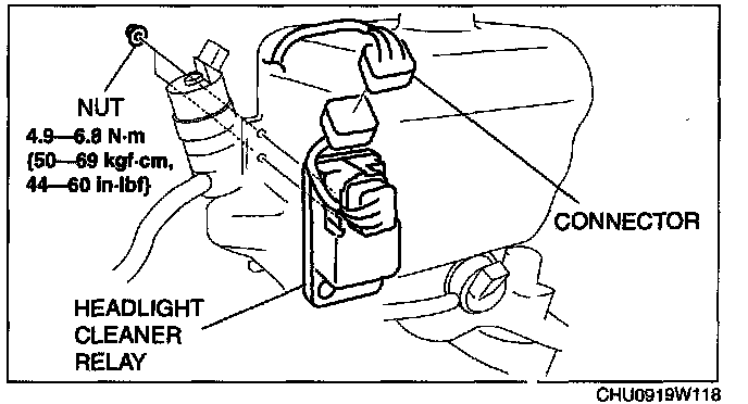 HEADLIGHT CLEANER RELAY REMOVAL/INSTALLATION1. Disconnect the negative battery cable.