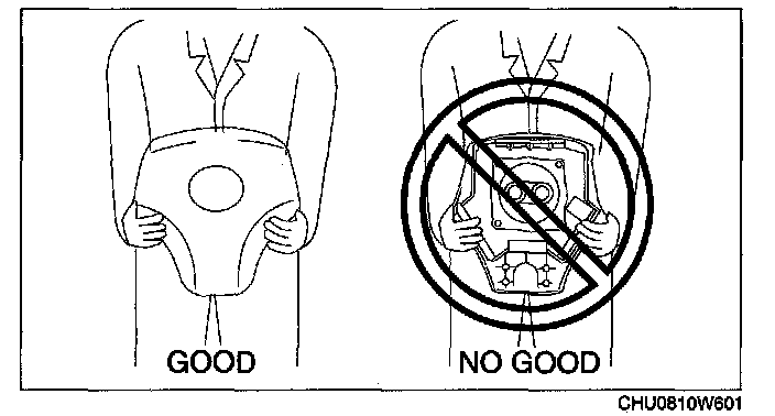 - Before removing the air bag module or disconnecting the air bag module connector, always turn the ignition switch to the LOCK position disconnect the negative battery cable, and then wait for 1 min or more to allow the backup power supply of the SAS control module to deplete its stored power.