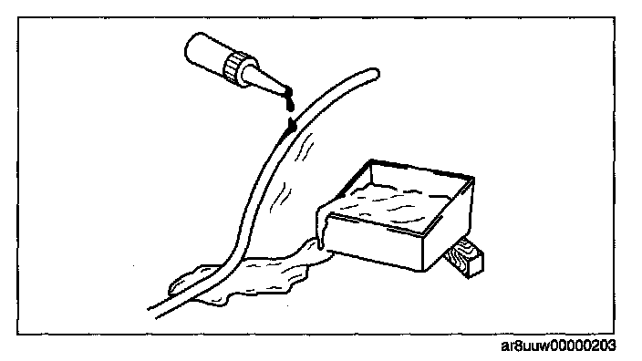 NOTE: Referring to the fluorescent dye instruction manual, mix the specified amount of dye into the engine oil or ATF (or transaxle/transmission oil).