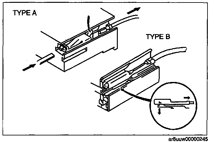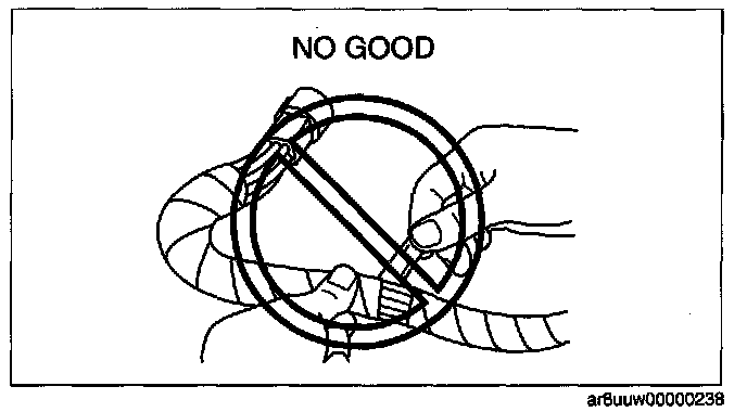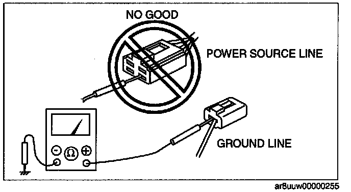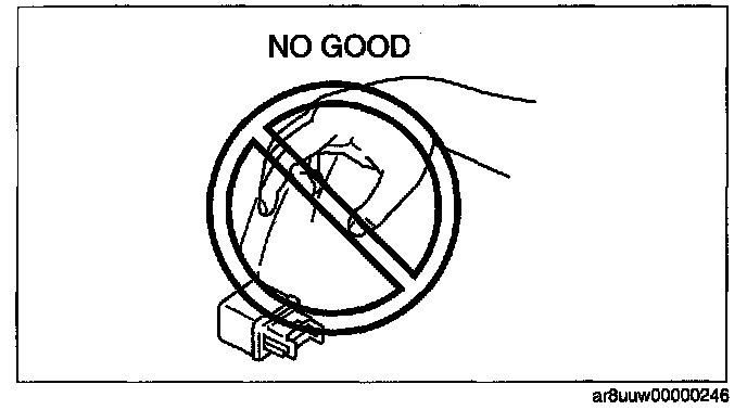 - When a tester is used to inspect for continuity or measuring voltage, insert the tester probe from the wiring harness side.