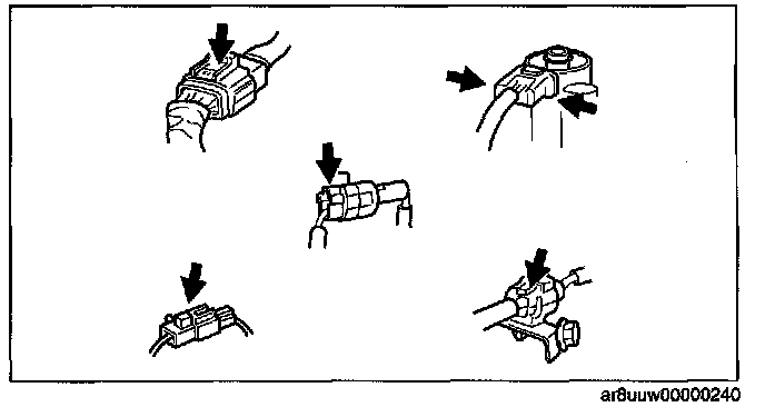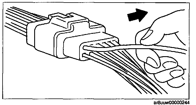 - Inspect the terminals of waterproof connectors from the connector side since they cannot be accessed from the wiring harness side.