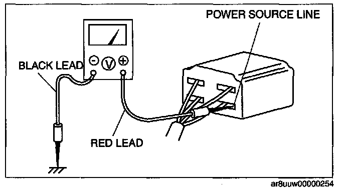 - The DC voltmeter is used to measure circuit voltage. A voltmeter with a range of 15 V or more is used by connecting the positive (+) probe (red lead wire) to the point where voltage will be measured and the negative (-) probe (black lead wire) to a body ground.