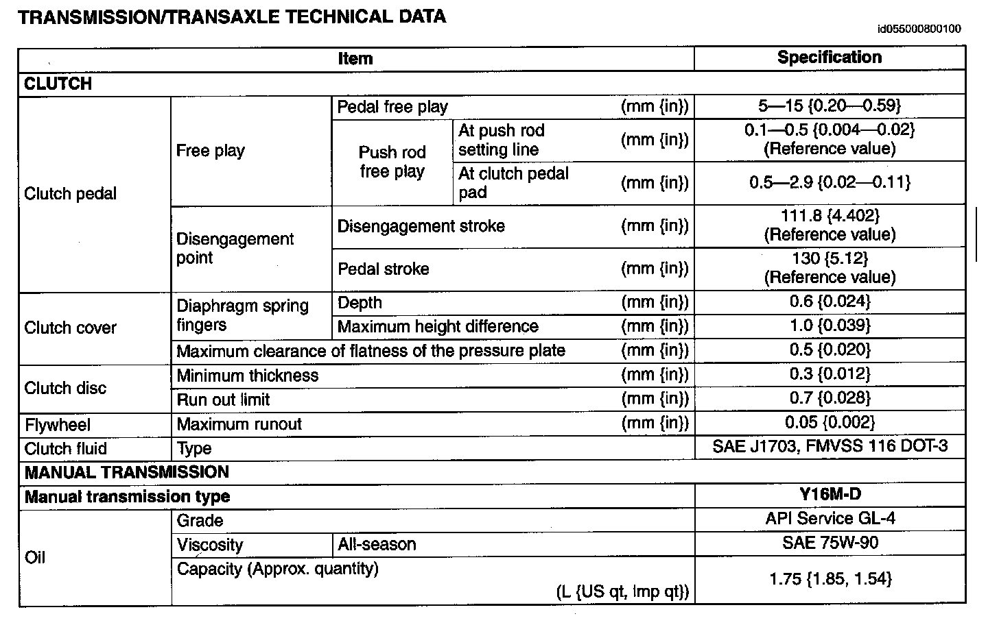 TRANSMISSION/TRANSAXLE TECHNICAL DATA (Part 1):
