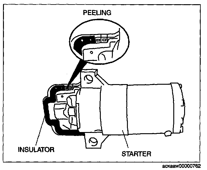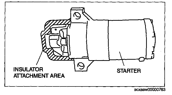 - When the battery cables are connected, touching the vehicle body with starter terminal B will generate sparks. This can cause personal injury, fire, and damage to the electrical components. Always disconnect the negative battery cable before performing the following operation.