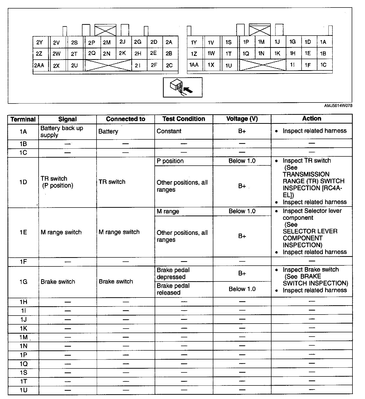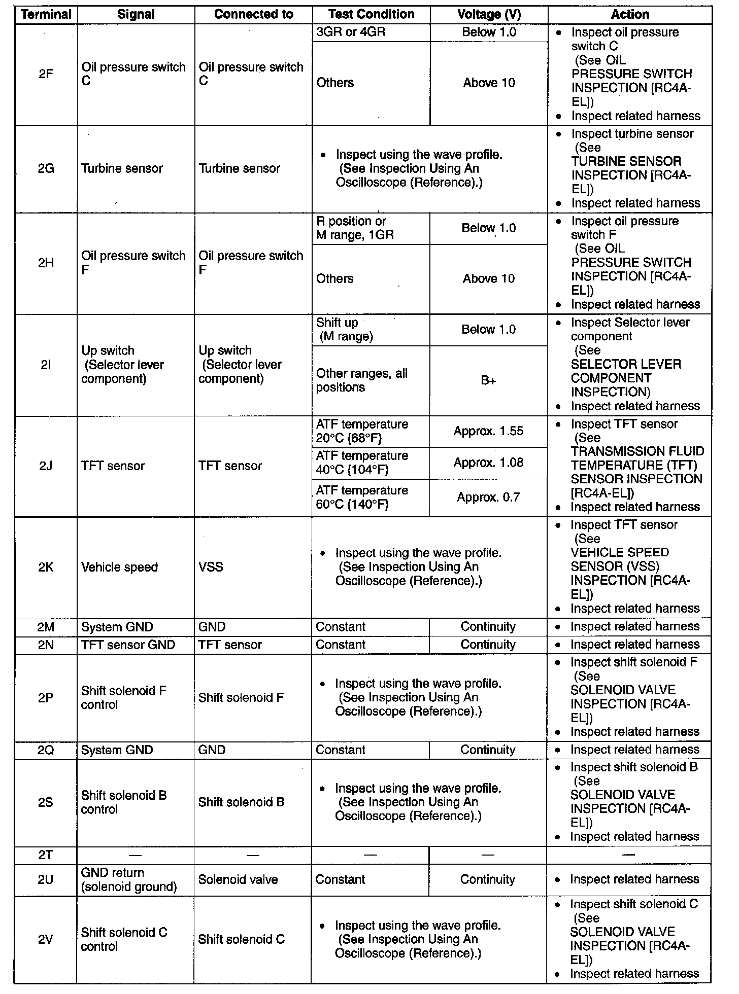 TCM INSPECTION [RC4A-EL]Terminal Voltage Table (Reference)
