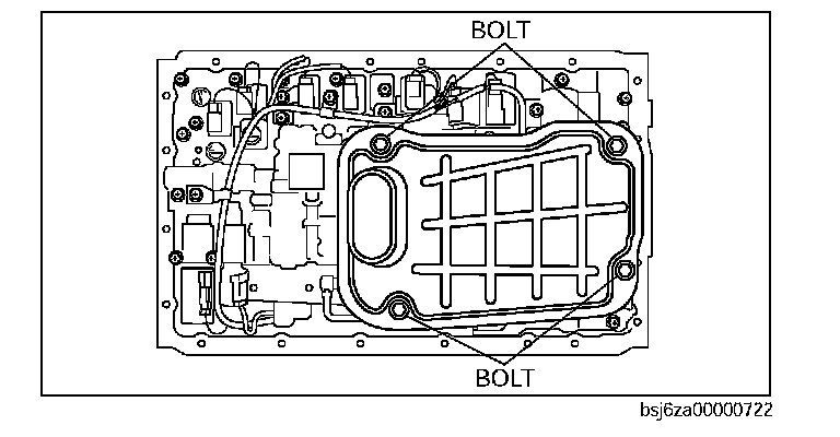 Caution: When installing the control valve body component, route the wiring harness correctly to the separate plate depression inside the control valve body component shown in the figure.