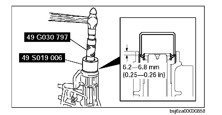 119. Assemble a new oil seal to the extension housing in the position shown in the figure using the SST and a hammer.