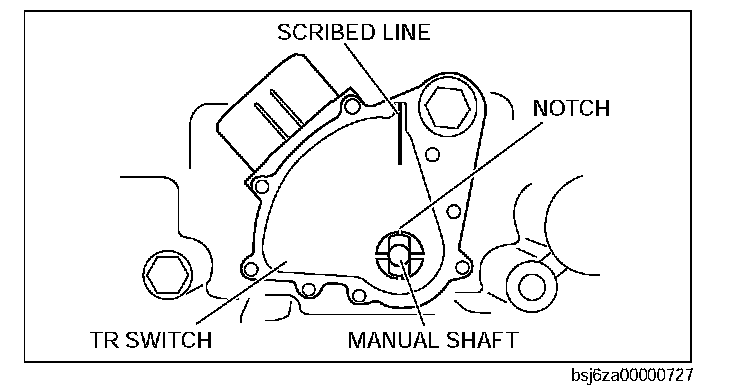 127. Verify that the scribed line on the TR switch and the manual shaft notch are aligned.