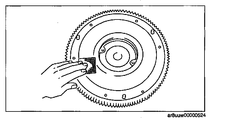 2. Inspect the surface that contacts the clutch disc for scratches, nicks, and discoloration.