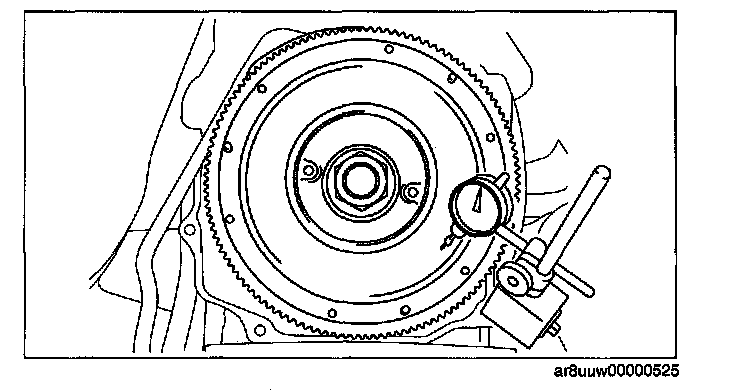 5. Measure the runout of the surface that contacts the clutch disc using a dial gauge.