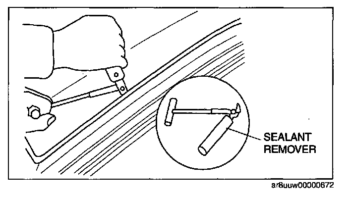 NOTE: For the areas of the sealant that are difficult to cut, use the piano wire and follow the procedure under "Reusing Rear Window Glass".