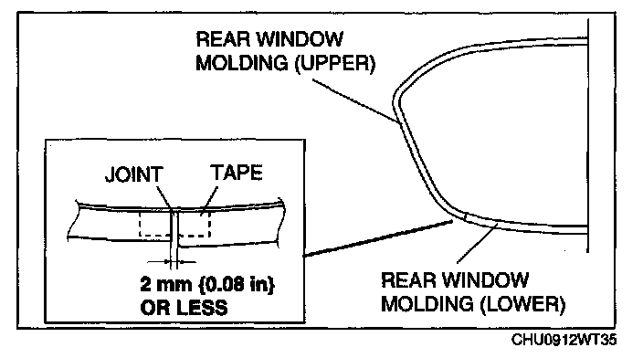 6. Affix the tape to the inside of the rear window molding at the joint.