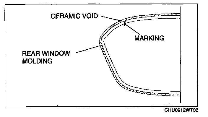 NOTE: Before removing the rear window glass from the body, mark the position of the glass by affixing tape to the glass and body panel.