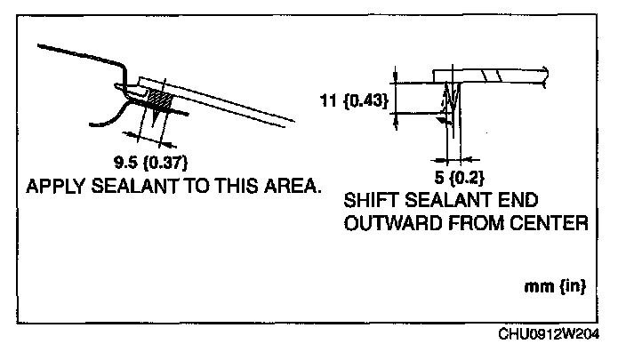 2. If the sealant has come off completely in any one place, apply some primer after degreasing, and allow it to dry for approx. 30 min. Then apply a 2 mm (0.08 in) thickness of sealant.