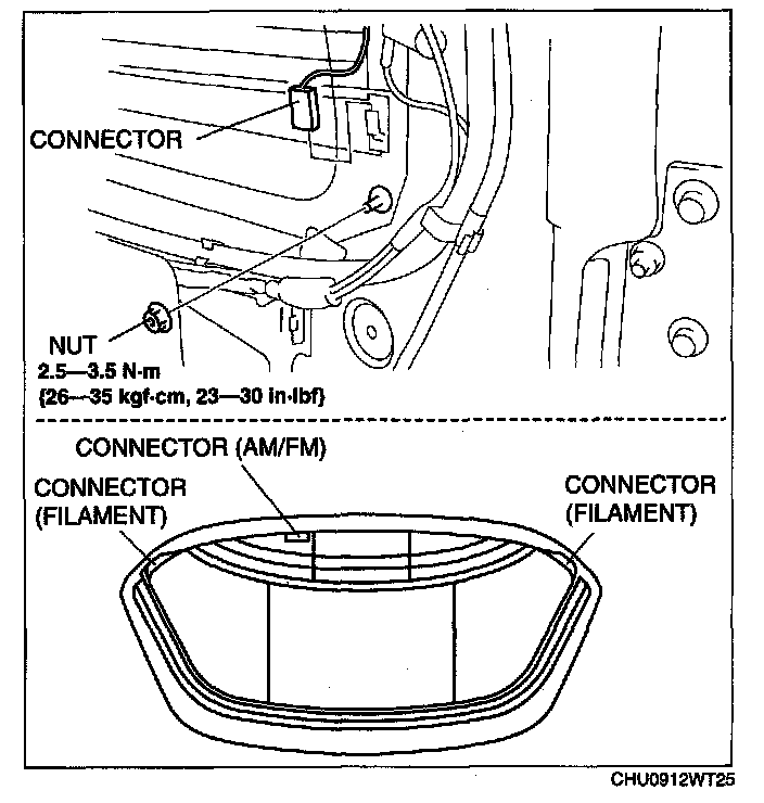 13. Connect the antenna and the filament connectors.