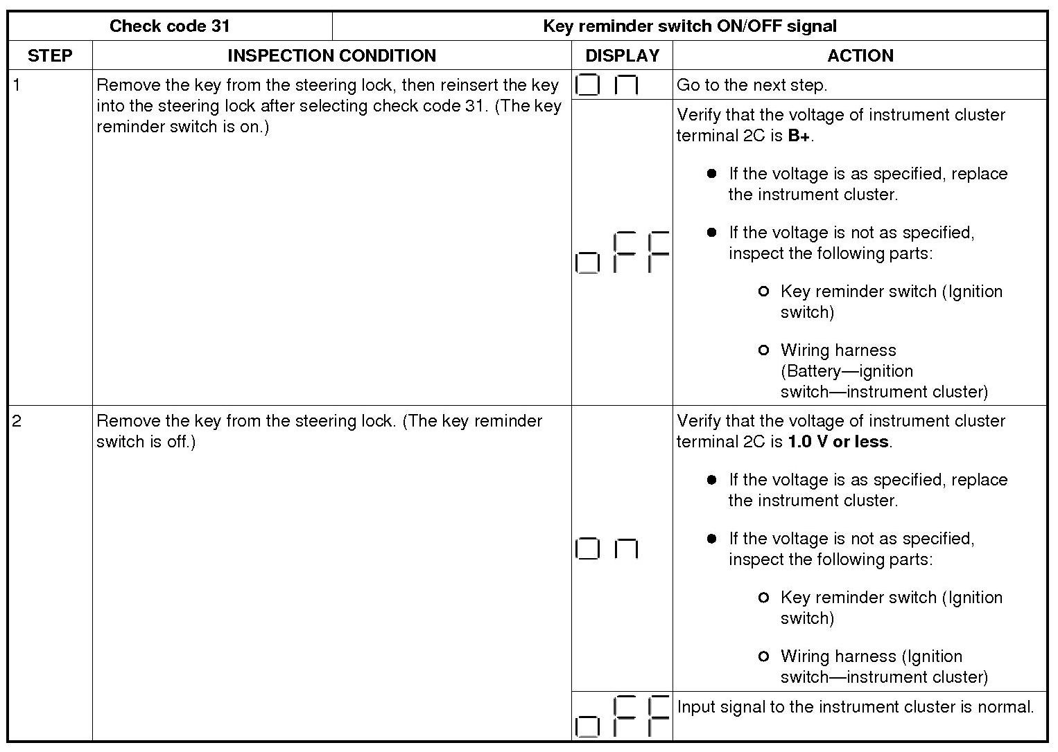 INSTRUMENT CLUSTER INPUT/OUTPUT CHECK MODE