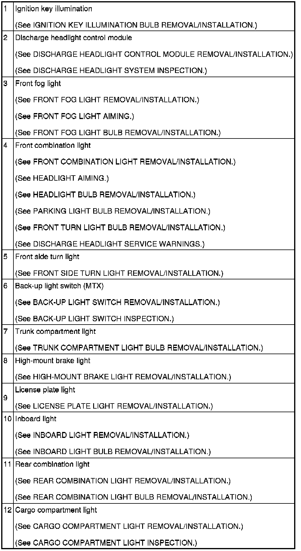 LIGHTING SYSTEMS LOCATION INDEX