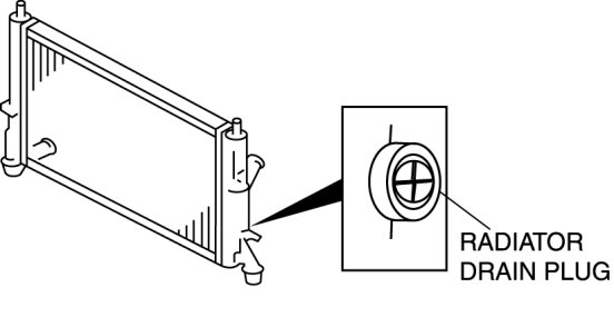 3. Remove the radiator drain plug and drain the engine coolant into a container.