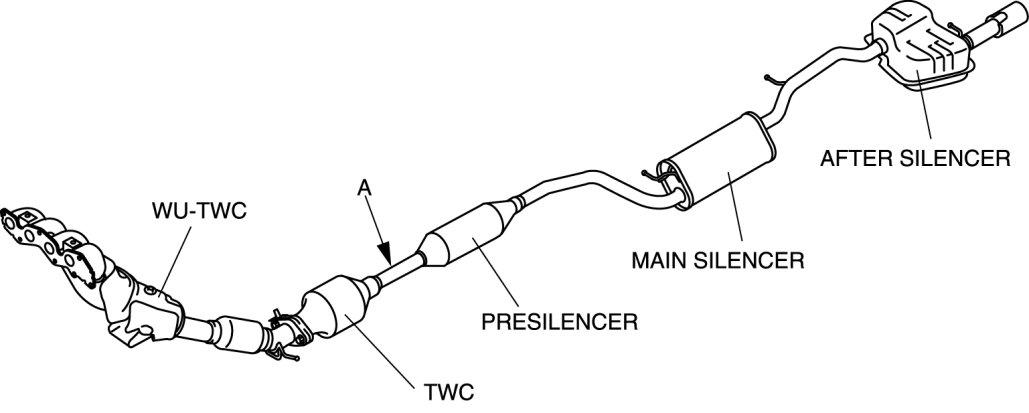- The TWC is integrated with the presilencer and main silencer. Therefore, when replacing the TWC, cut between the TWC and presilencer.