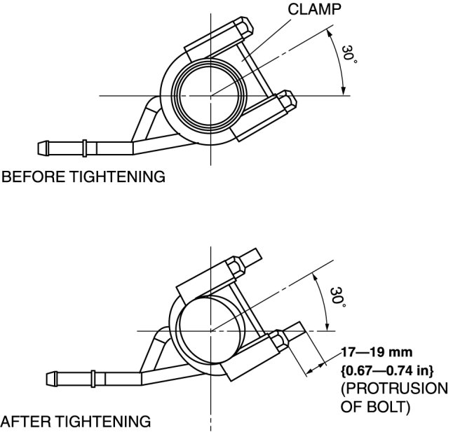 - Do not loosen U-shaped bolt after tightening. If it is loosened, the bolt cannot be tightened at the specified torque with the specified protrusion.