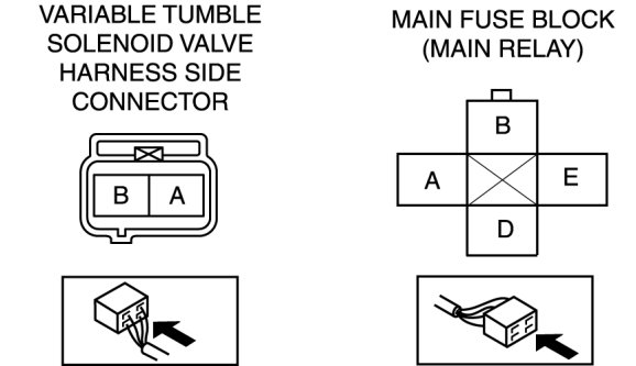 - Variable tumble solenoid valve terminal A and main relay terminal A
