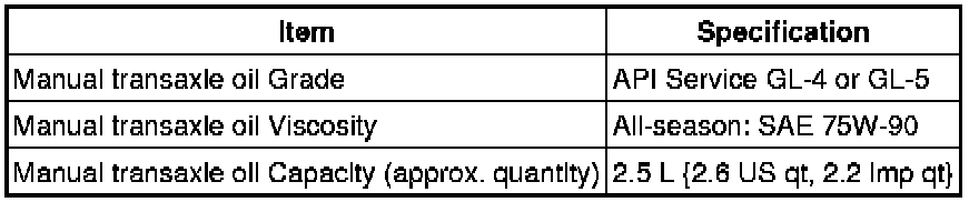Transmission/Transaxle Technical Data