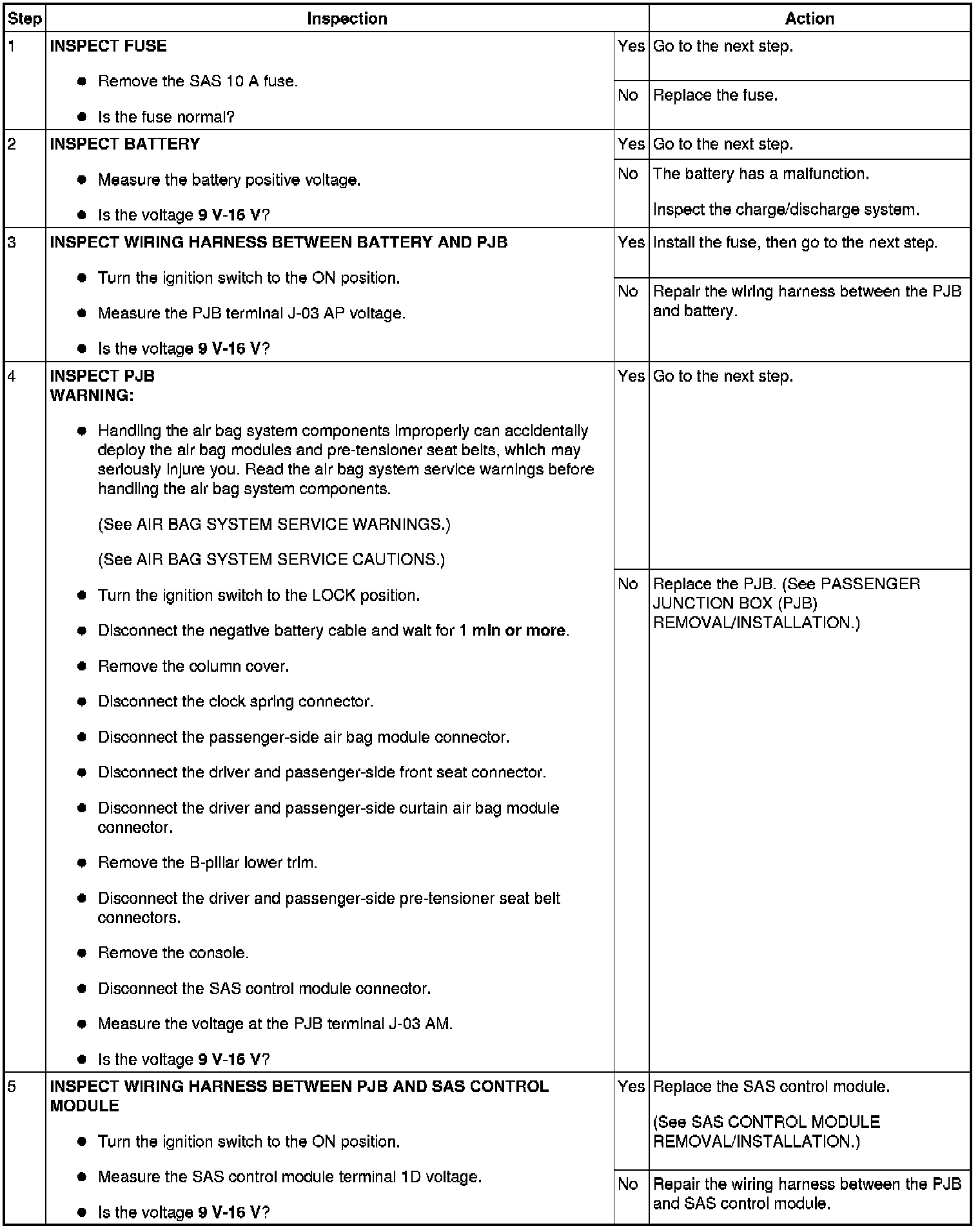 Detection Condition/Possible Cause: