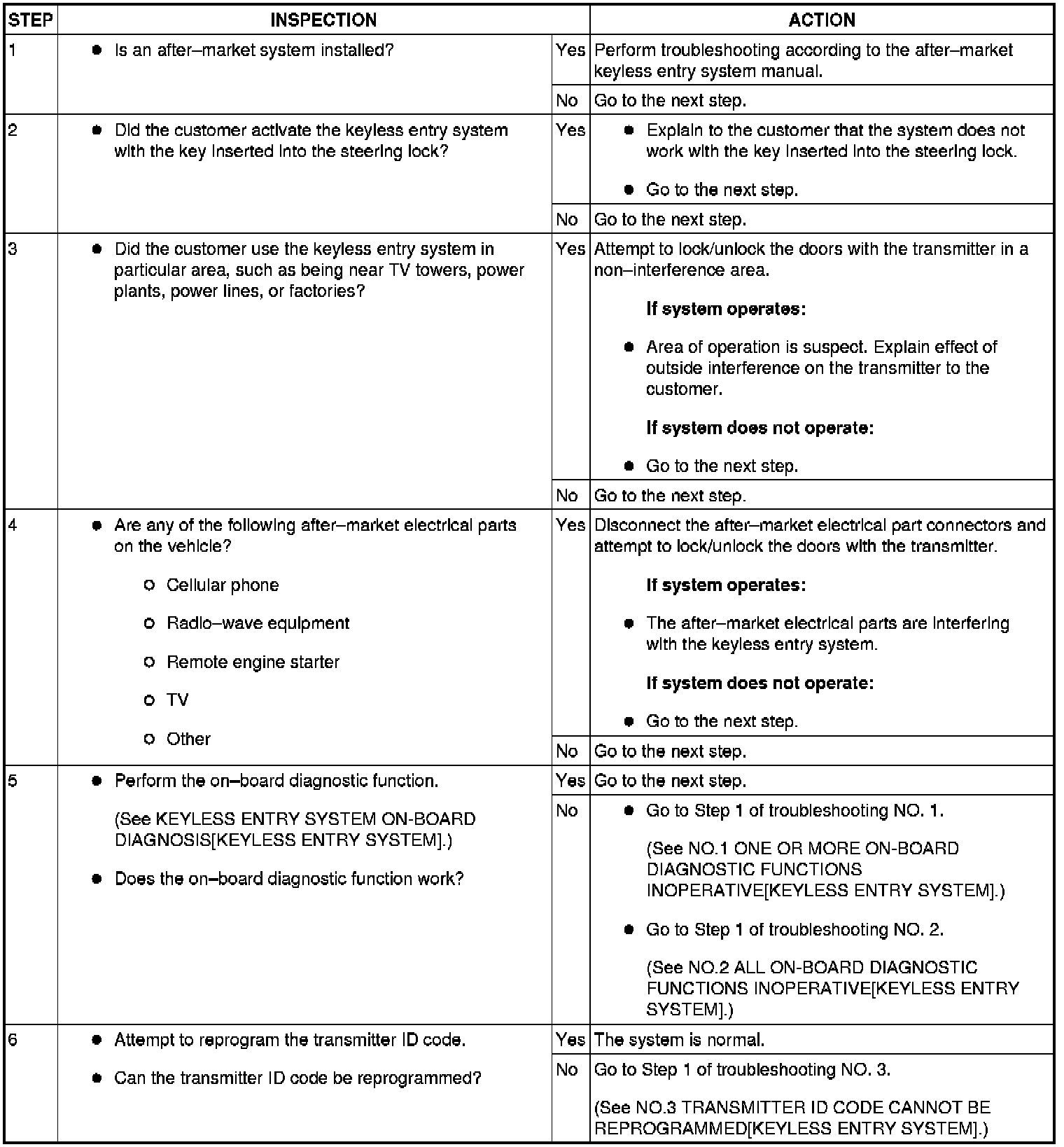 KEYLESS ENTRY SYSTEM PRELIMINARY INSPECTION [KEYLESS ENTRY SYSTEM]