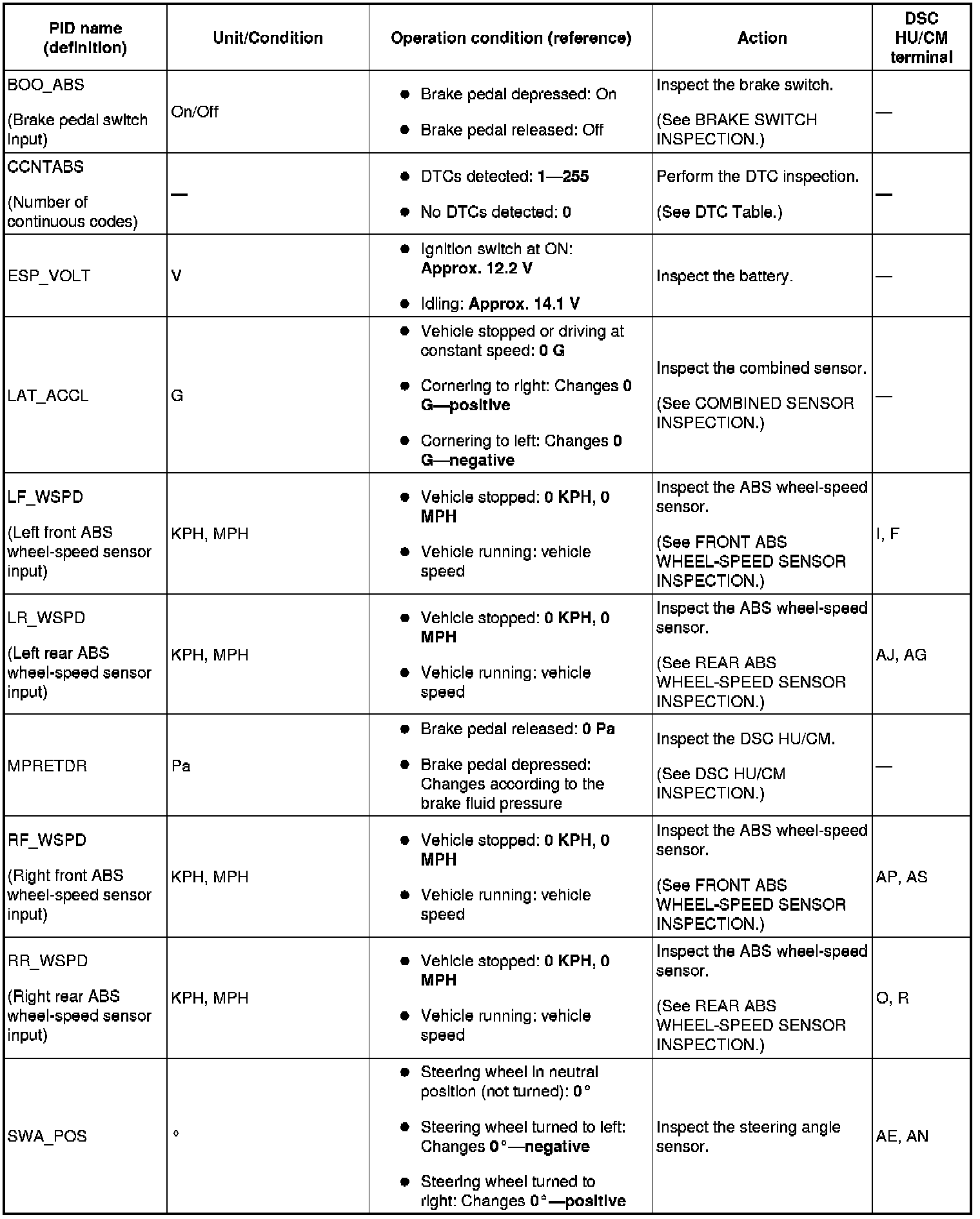 ON-BOARD DIAGNOSIS [DYNAMIC STABILITY CONTROL (DSC)]
