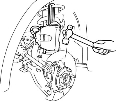 1. Remove the brake caliper component from the steering knuckle and suspend it out of the way using a cable.
