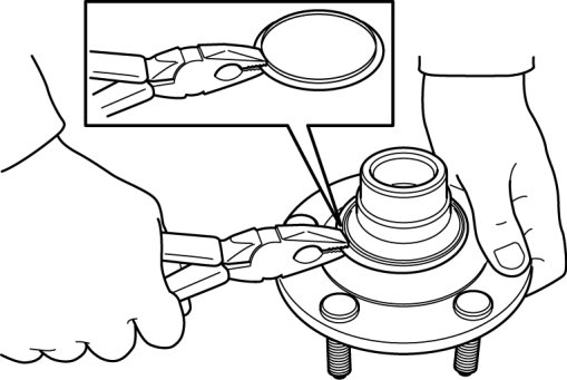 2. If the bearing inner race remains on the front wheel hub component, perform the following procedure: