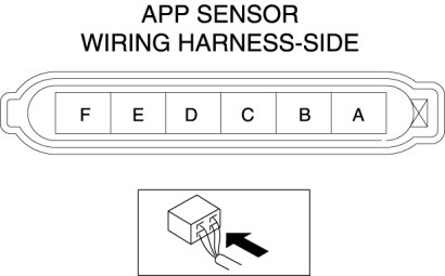 - APP sensor terminal F and main relay terminal A