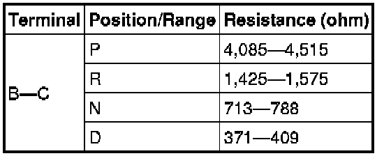 Transmission Position Sensor/Switch: Specifications