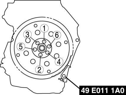 Tighten the drive plate mounting bolts in two or three steps in the order as shown in the figure.